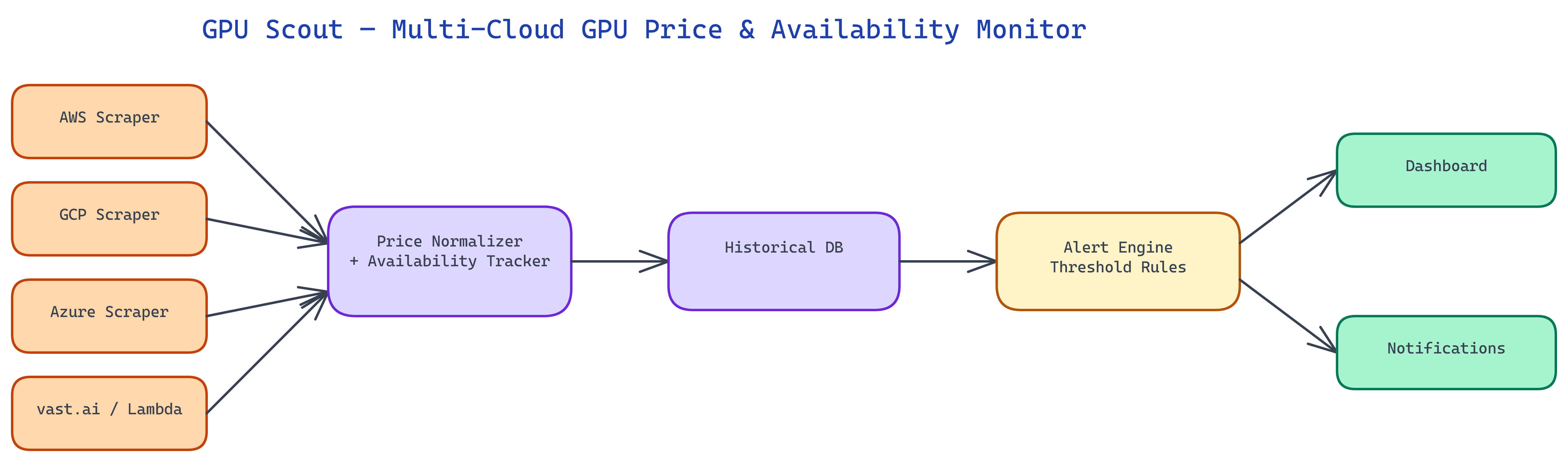 - Normalization: One schema for GPU type, region, price per hour, and availability.