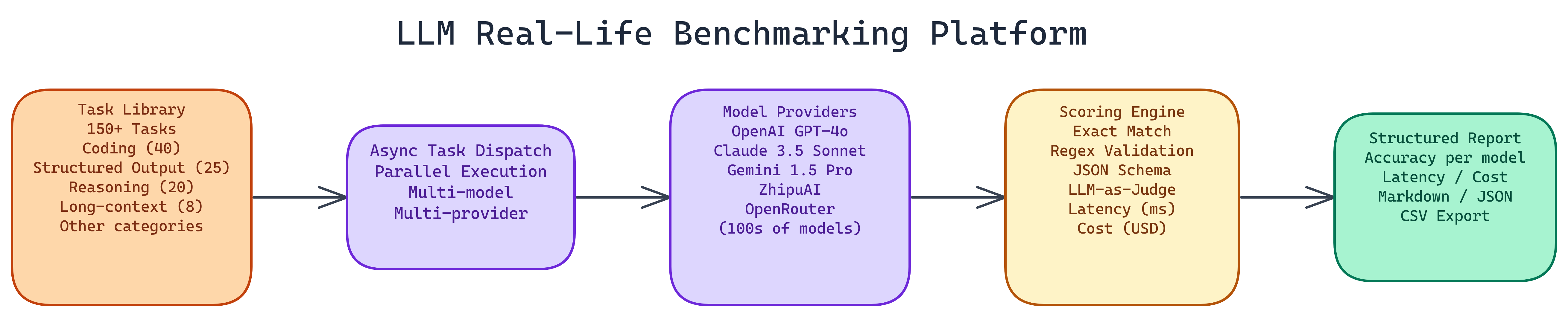 - Task suites: Curated scenarios with reference checks and LLM-as-judge where it helps.