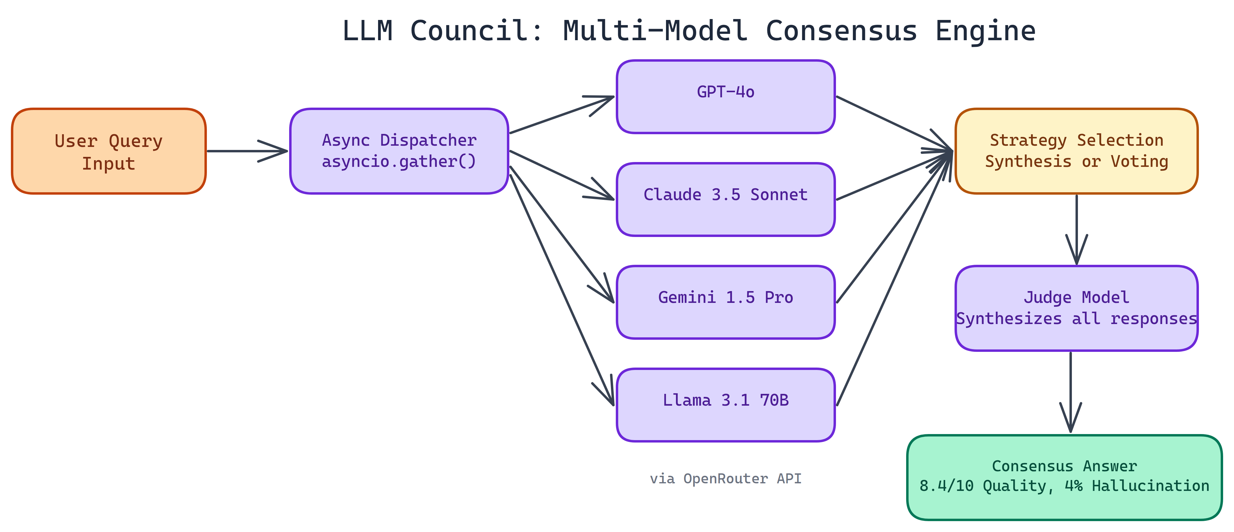 | 4. Aggregate | Judge or heuristic selects final output and rationale |