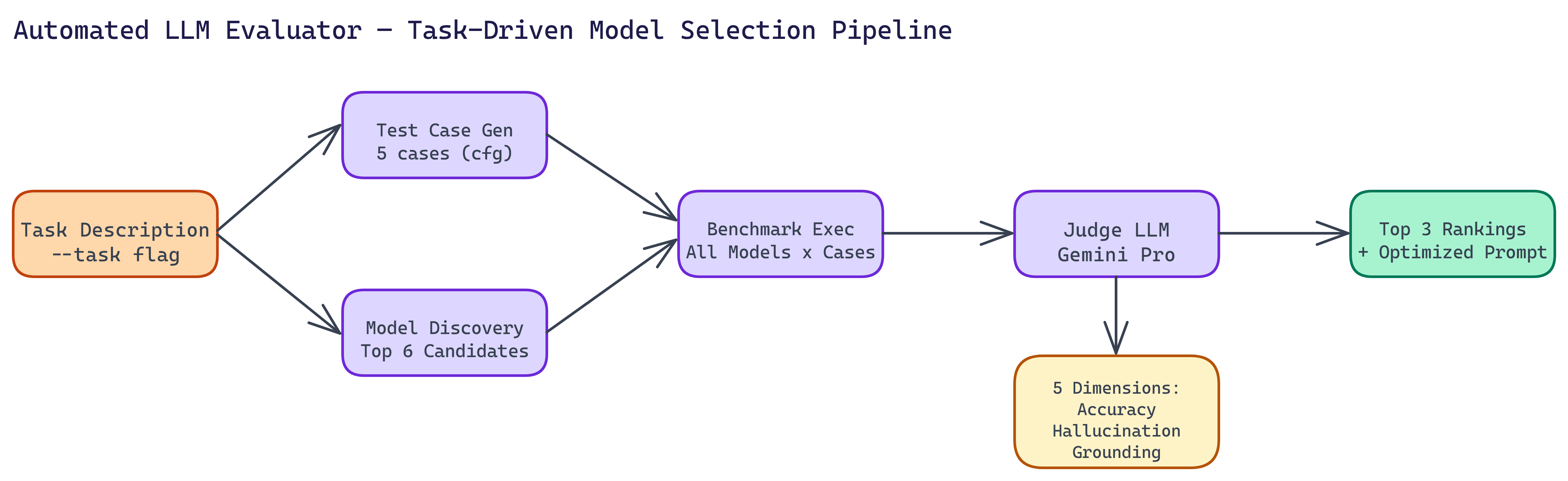 | 4. Summarize | Aggregate metrics, composite score, and worst examples for review |
